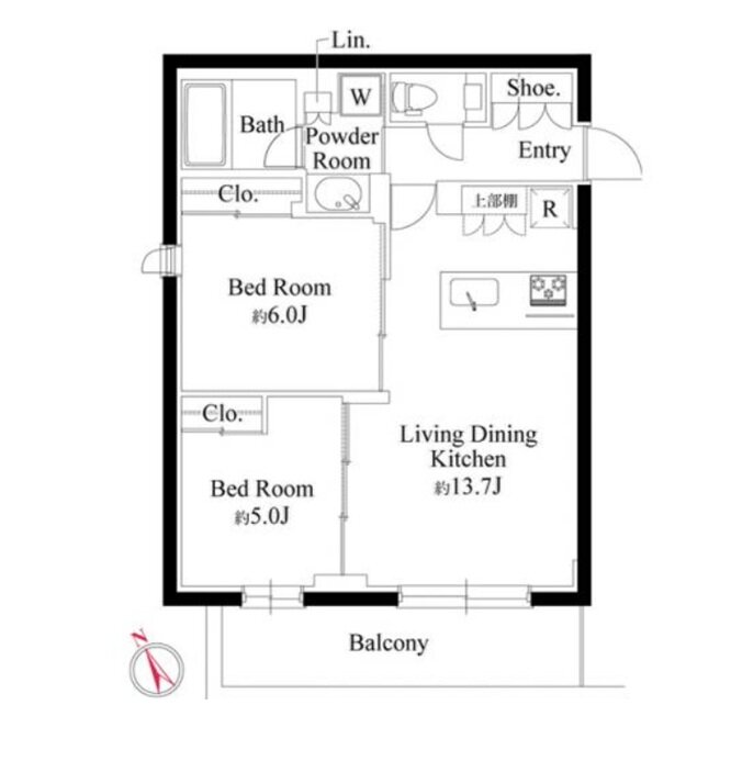 2LDK 55.8m² |