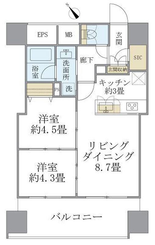 2LDK 43.85m² |