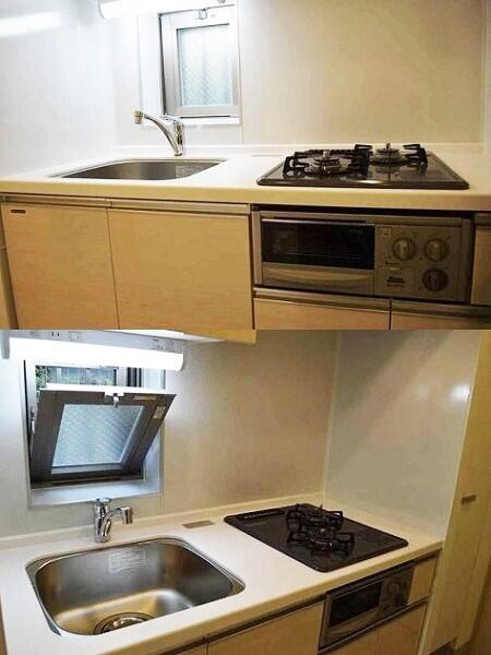 キッチン | システムキッチン , ガスキッチン , 2口コンロ , グリル付 |