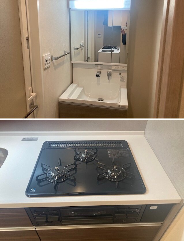1Kの間取りにもグリル付きの3口ガスキッチン、大型浴槽を完備!